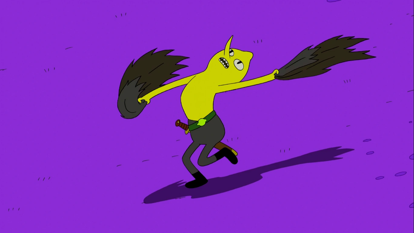 Cuando Finn recibe el volteo del Conde de Limonagrio, su cabello queda como el que se ve en "A Mi Manera".