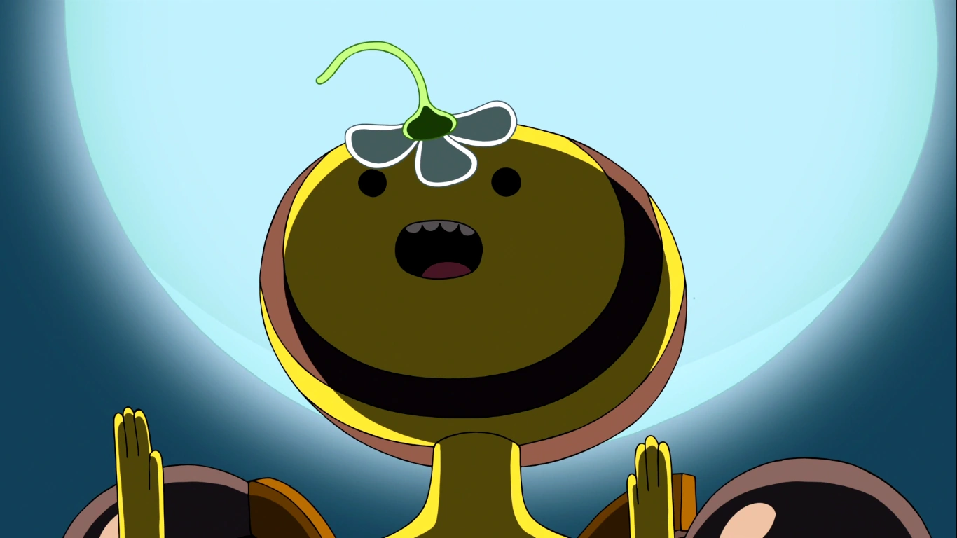 Finn defiende a Brisa pero como ve que le meten una paliza, decide tomar del Jugo Real que había dentro de la casa, volviéndose una abeja reina y mandando a volar con telequinesis a las otras abejas. Luego de ese inconveniente, Brisa revela estar enamorada de Finn y de su flor, le ofrece a tomar algo de polen y volverse su pareja, pero Finn dice no sentir lo mismo, Brisa se angustia diciendo que bebió el jugo por el y se va. Finn pasa la noche con la Princesa Grumosa. Le pregunta a su propia flor si algo de eso esta sirviendo, pero a ésta se le cae un pétalo, Finn dice que todo eso va directo a la bóveda.