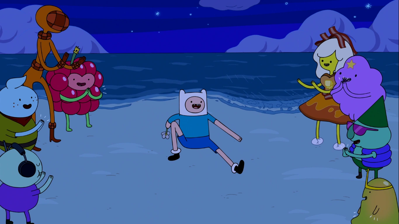 en la fiesta, Finn besa a la Princesa Cangrejo y esta se va felizmente a su hogar. Brisa aparece sobre la cabeza de Finn preguntándole si se siente mejor, Finn le dice que algo, pero que llega a la deducción de que si salia con mas chicas podría estar estable y hacer que se sienta mejor, mientras que Brisa quiere intentar obsesionadamente polinizar la flor.