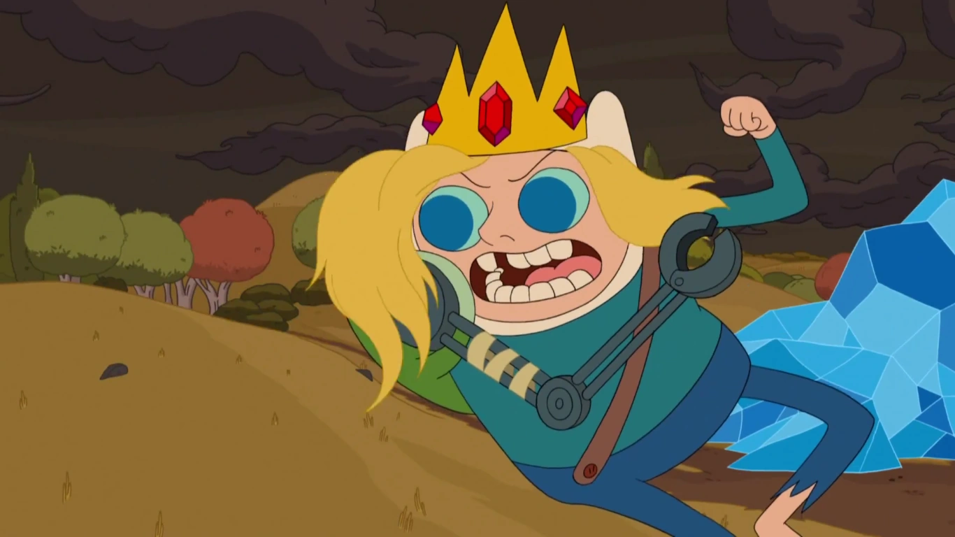 En Extinctworld, la corona solía estar en posesión del difunto Rey Helado de ese mundo. Fionna la encuentra en el basurero dentro de la batería del Rey Helado pero no lo revela hasta después de la muerte de BMO de ese mundo y su encuentro con el Lich de ese mundo. Haciendo un ritual mágico, usan al Lich como batería mágica y Fionna y Cake vuelven a su mundo dentro de la mente de Simon[3], mientras él se prepara para colocarse la corona, pero es interrumpido por GOLB-Betty quien lo lleva a su dimensión y lo hace reflexionar enviándolo al futuro en el cuerpo de Shermy.