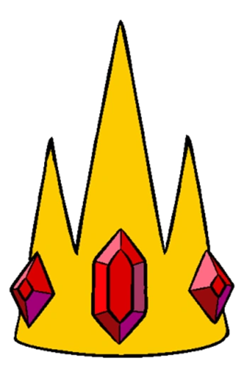 La corona es de color amarillo mostaza, tiene tres puntas, una más grande que las otras dos que están del mismo tamaño y a veces se le ven cinco, es decir, dos más en la parte de atrás. Tiene tres gemas rojas, están ubicadas debajo de cada punta de la corona, la del medio más grande que las otras dos.
