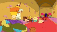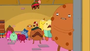 En " Guerra de Pijamas ", Crunchy fue el último en tomar el trono temporal. Cuando estaba a punto de ejecutar a Starchy poniéndolo en el cráter, la Dulce Princesa y Finn regresaron y les dijeron a todos que se metieran en sus sacos de dormir para poder leerles una historia. También en el episodio, Starchy se refiere a Crunchy como "el chico a quien acudir" y "el nuevo Pan de Canela", ya que Pan de Canela apareció en muchos episodios; esto sugiere que Crunchy podría ocupar el lugar de Pan de Canela como la "persona a la que acudir" en varios episodios y desempeñar un papel más central en la serie.