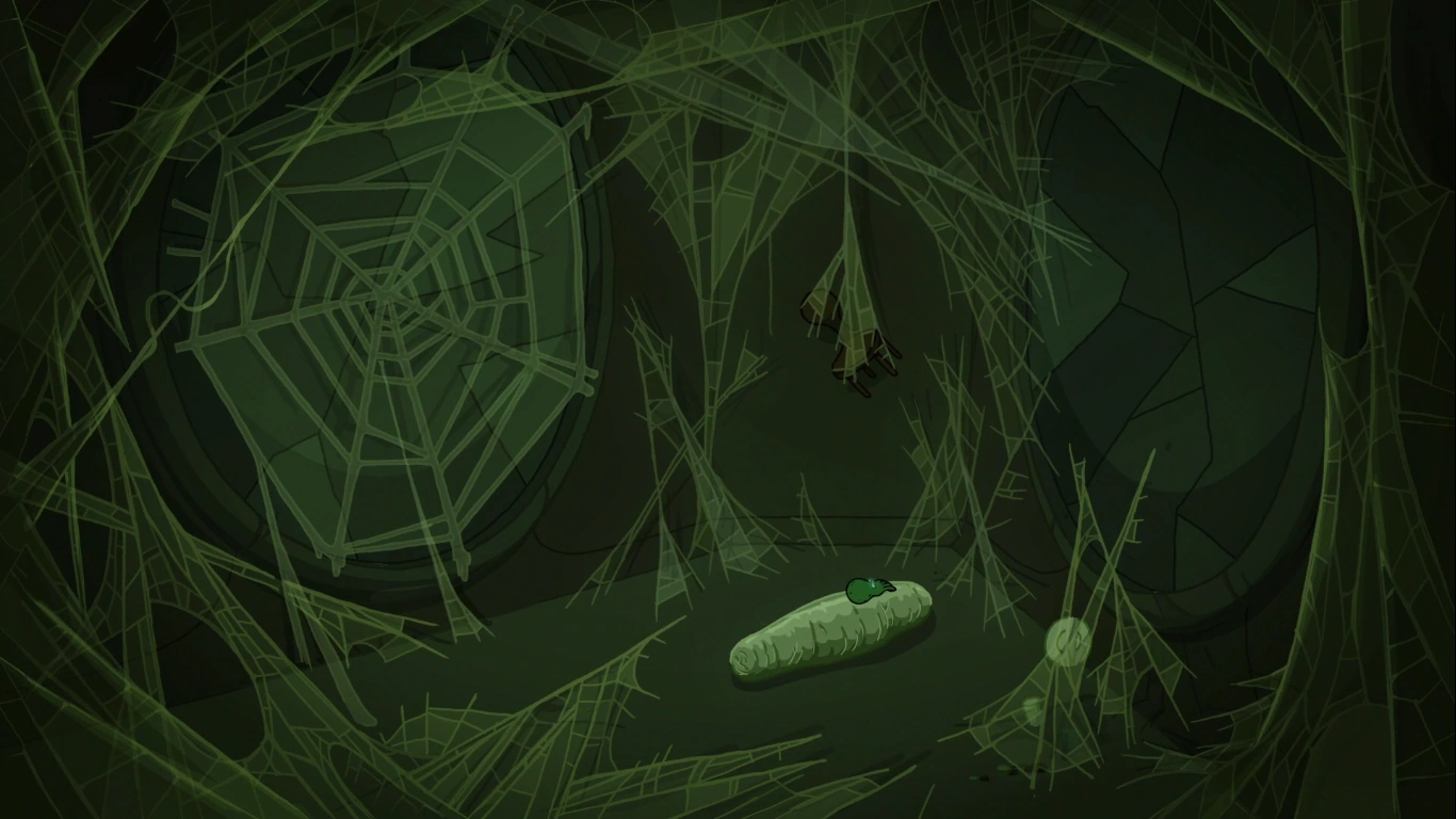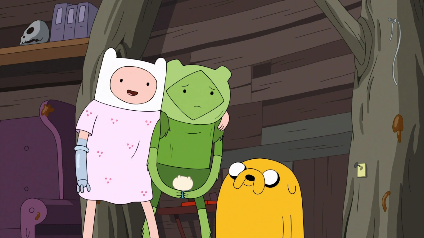 - Curiosamente, una luz forma la silueta del brazo derecho perdido de Finn, visto antes en el capítulo "La Torre" y el brazo izquierdo del clon de hierba de Finn se observa cubierto por una sombra.