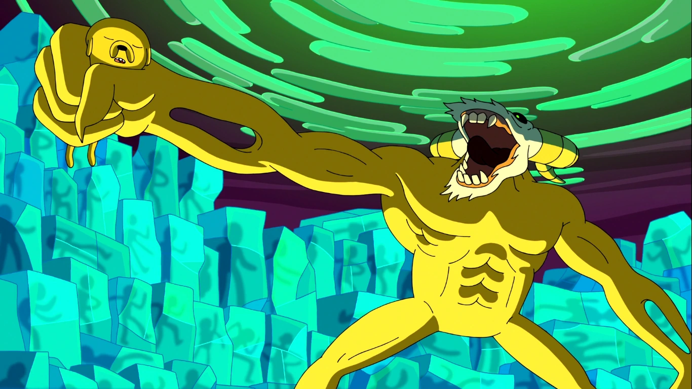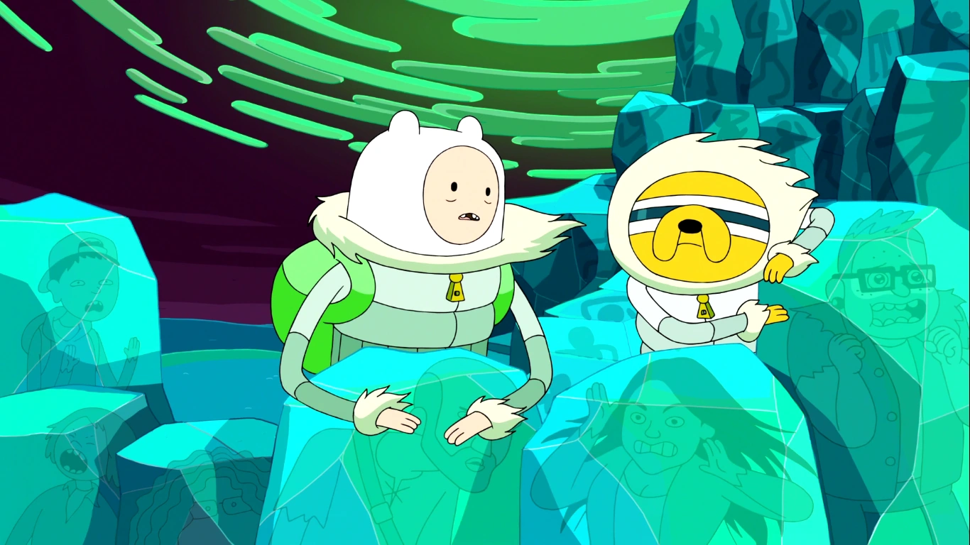 - En la Carta de Título se muestra a Finn entrando al mundo alterno donde se observa el ambiente de terror y una pila de hielo en el centro.