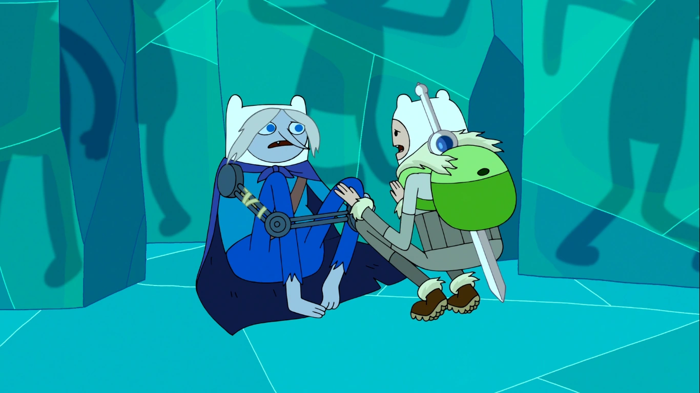 - El error en el episodio "Jake el Perro", donde la corona del Rey Helado se ve en el cráneo de Simon Petrikov Alterno y en Finn Alterno se explica en este episodio. Prismo edita la línea de tiempo Farmworld, para colocar la corona sobre Simon cuando la bomba estalla.