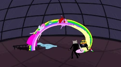 En el observatorio, Finn se ve acorralado por la luz, sólo para descubrir que se trata de Jake con Arcoiris, quien tenía a todos los invitados en su cuerpo. Jake revela que él sabía sobre el plan de Finn hace meses atrás y junto con Arcoiris planeó todo eso. Finn le pregunta sobre el monstruo que vio, y Jake cree que él sólo estaba imaginándolo por miedo y se van. Después de salir del castillo, Finn recuerda al monstruo que vio y decide ponerlo en "la bóveda", y decide olvidarse de él.