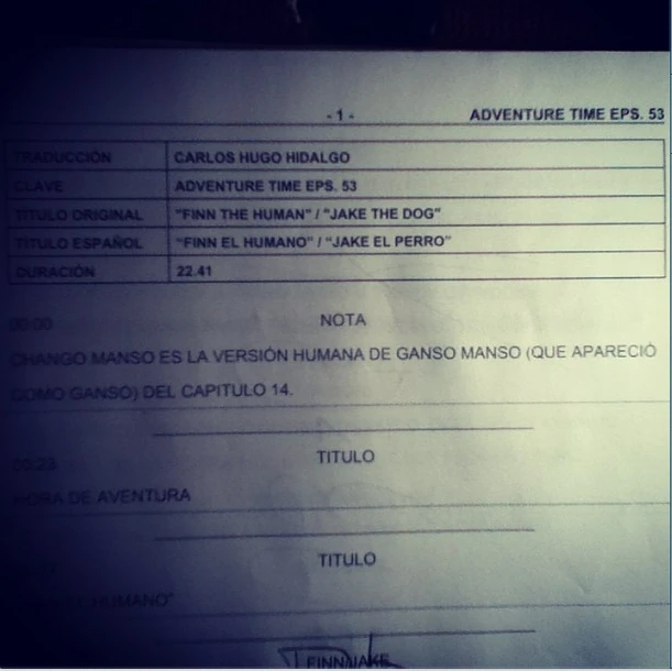 Foto del nombre del episodio tomada durante el doblaje al español