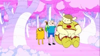 Ya en el cielo (que en realidad es el Reino de las Nubes) se encuentran con el Rey Helado, y notan cómo su maldición de caramelo se ha disipado. El Rey Helado le explica brevemente a Finn que ahora vive en el cielo junto a sus ganchos de cielo. Por otro lado, Jake llama a Finn a observar todo el panorama, y para su horror, ven cómo todo Ooo ahora está dividido por 4 elementos (dulce, fuego, saliva y hielo).