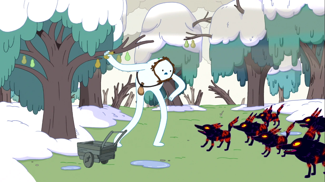 El episodio comienza con un Golem de Nieve en su hogar. El Golem tiene que salir para hacer sus "compras" porque ya no le quedaba nada de comida en su despensa. En su viaje ve a Finn y Jake luchando con el Rey Helado, al que no podían golpear porque llevaba su armadura "invencible". El Golem llega hasta una zona donde hay más nieve derretida y se acerca a ver los frutos de un peral (árbol de peras). Cuando ve que la pera está quemada se da la vuelta y ve que le están rodeando unos lobos de fuego. Después de atacarle se van todos menos uno: el Lobito de Fuego.