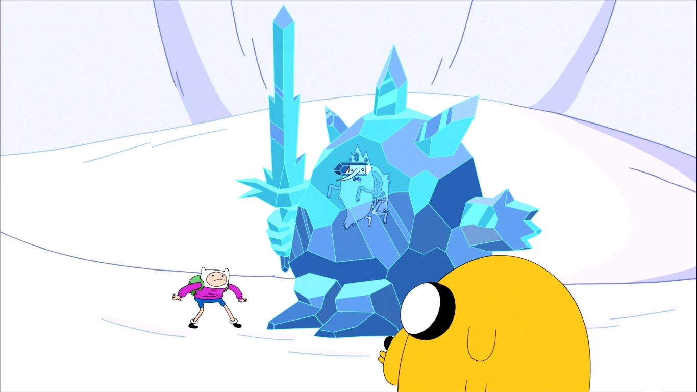 - El Rey Helado está en ropa interior en la armadura, pero cuando Finn y Jake lo derrotan lo envuelven en nieven con tela parecida a la de su ropa interior.
