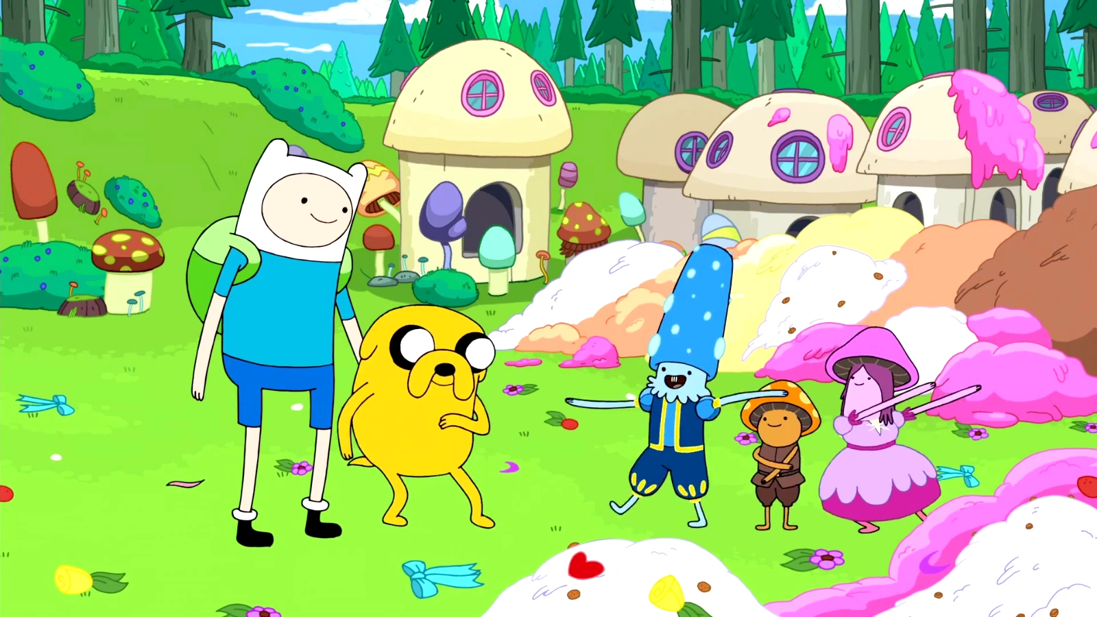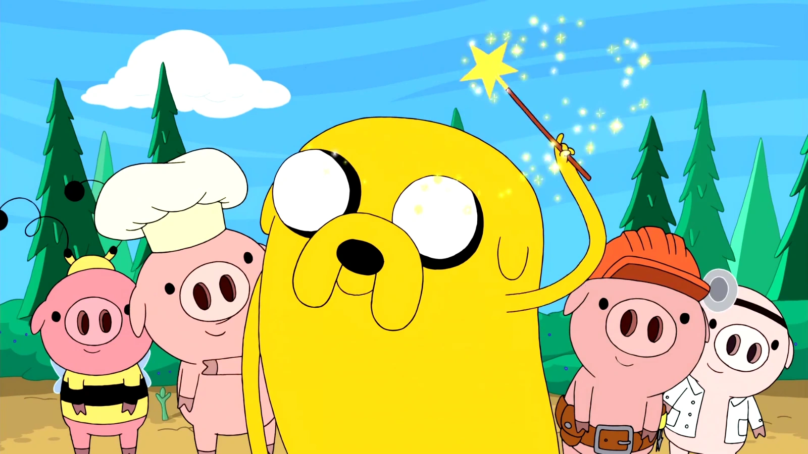 Luego se quedaron dormidos al despertar Se dieron cuenta que De la ultima sale una gran vaina llena de helado que nunca se acaba. Visto esto lo más seguro que la mala sean los cerditos. Ellos estaban usando las varitas para destruir el pueblo cercano. Finn y Jake recuerdan que en el examen decían que eran alérgicos al helado a si que los hacen estallar dándoles helado. Todos estallan dejando brillantina y flores. Jake limpia el pueblo sucio de helado y se va al maratón diciendo que el siempre tiene sitio para el helado.