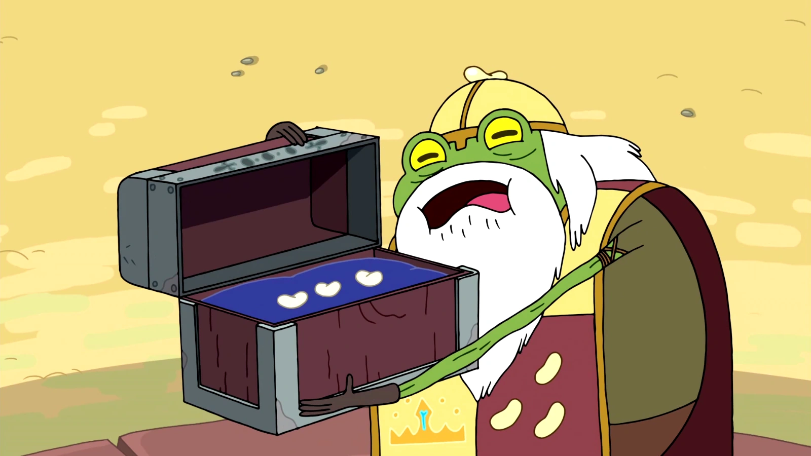 Jake esta corriendo con un bol de helado en la mano y Finn le sigue. Jake le dice que lleva toda la semana entrenando para el maratón de helado. En ese momento oyen unos ruidos que vienen de unos arbustos cercanos. Cuando lo ven Finn dice que es un pequeño caballero gnomo, Jake dice que es una rana vestida de caballero gnomo pero el ser les cuenta que es en realidad un caballero gnomo que fue transformado en sapo. El problema del sapo era que estaba a punto de morir pero que no podía porque necesita que siga un trabajo, alguien que sea valiente y puro para que pueda seguir su ideal, cuidar 3 frijoles mágicos. El caballero había pasado toda su vida cuidando de los frijoles para que nunca sean plantados porque dos de ellos son buenos pero el otro no. Finn le da su palabra de que va a seguir su ideal y el gnomo sapo le da los frijoles, su arma y vuelve a su forma de gnomo normal para morir convirtiéndose en ceniza.