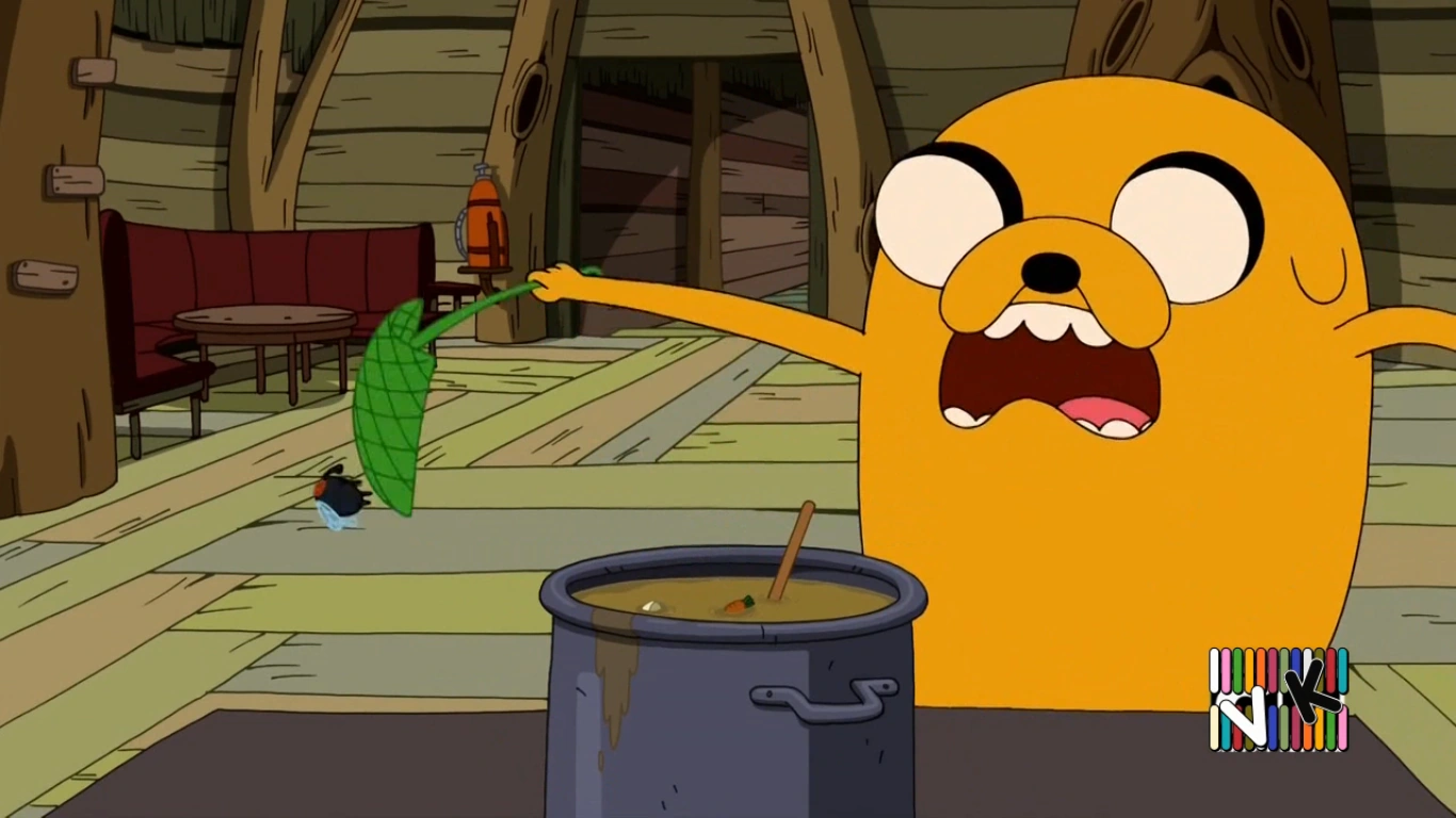 Finn, Jake y BMO se encontraban en el Fuerte del Árbol en un día de lluvia: Finn leyendo la revista "Chico Aventurero" (queriendo guardar el final para mañana); BMO practicaba movimientos de karate de una revista con una almohada y Jake sufría de una jaqueca y de un síndrome de pierna inquieta. Luego Jake decide hacerse una sopa para sentirse mejor, pero en ese momento se aproxima una mosca, dispuesta a beberla; y Jake, asqueado, toma un matamoscas y la golpea contra la hornilla, matándola.