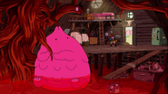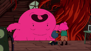 Físicamente es muy grande, posee dos alas pequeñas en su espalda. Su rostro está al revés, su boca está arriba y sus ojos abajo. En su abdomen tiene varios agujeros donde sale el fluido para el Dulce Reino y su textura es de goma de mascar como es Bonnibel.