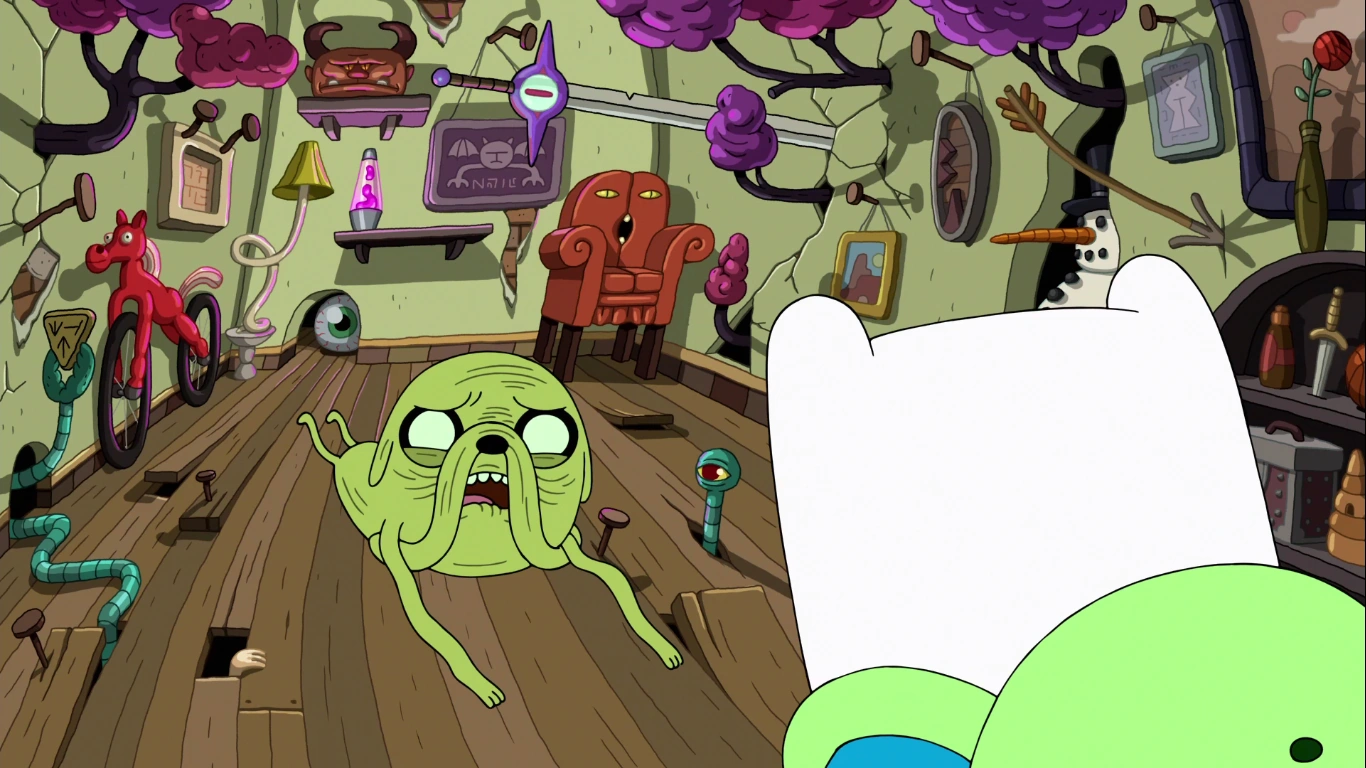 De repente, el agujero que Jake estaba cavando se desvanece, y él es separado de su padre. Él es aspirado por un vampiro, y sus padres se ríen de él cuando llora por ayuda. Cuando Finn intenta devolverle los dientes a la Dulce Princesa, el pasto lo traga. Emerge en una dimensión alternativa, con la nube de un sólo ojo mirándolo. Escucha a Jake llorando por ayuda desde arriba, y quiere volar para ir con él. Encuentra a Jake, arrugado y débil, pero luego escucha que BMO critica la actuación.
