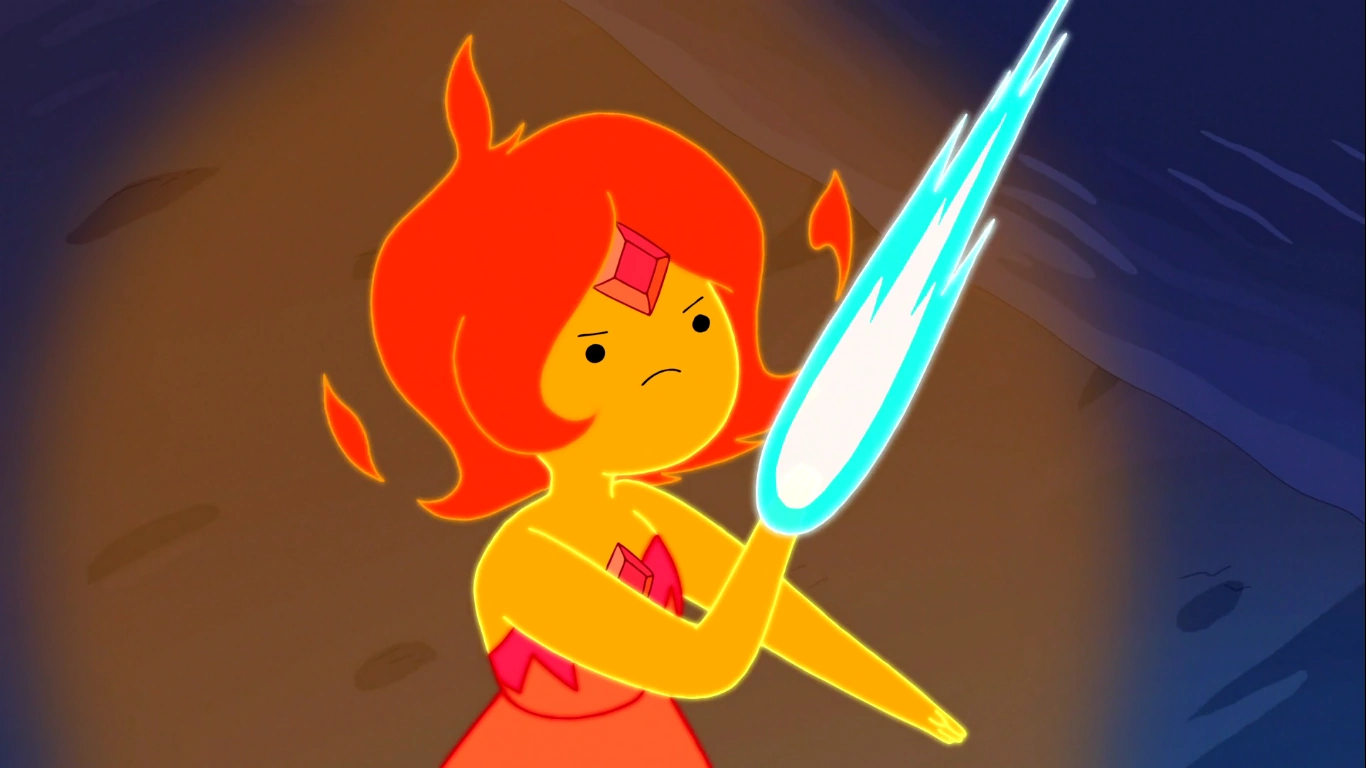 - Como se ve en "Caliente al Tacto", cuándo extinguen el fuego que ella creó, resulta herida, sin embargo, en "Fuego Inestable", cuándo Finn se lanza al agua para apagar el fuego que ella provocó, no le hiere. Es más, hasta se ríe.