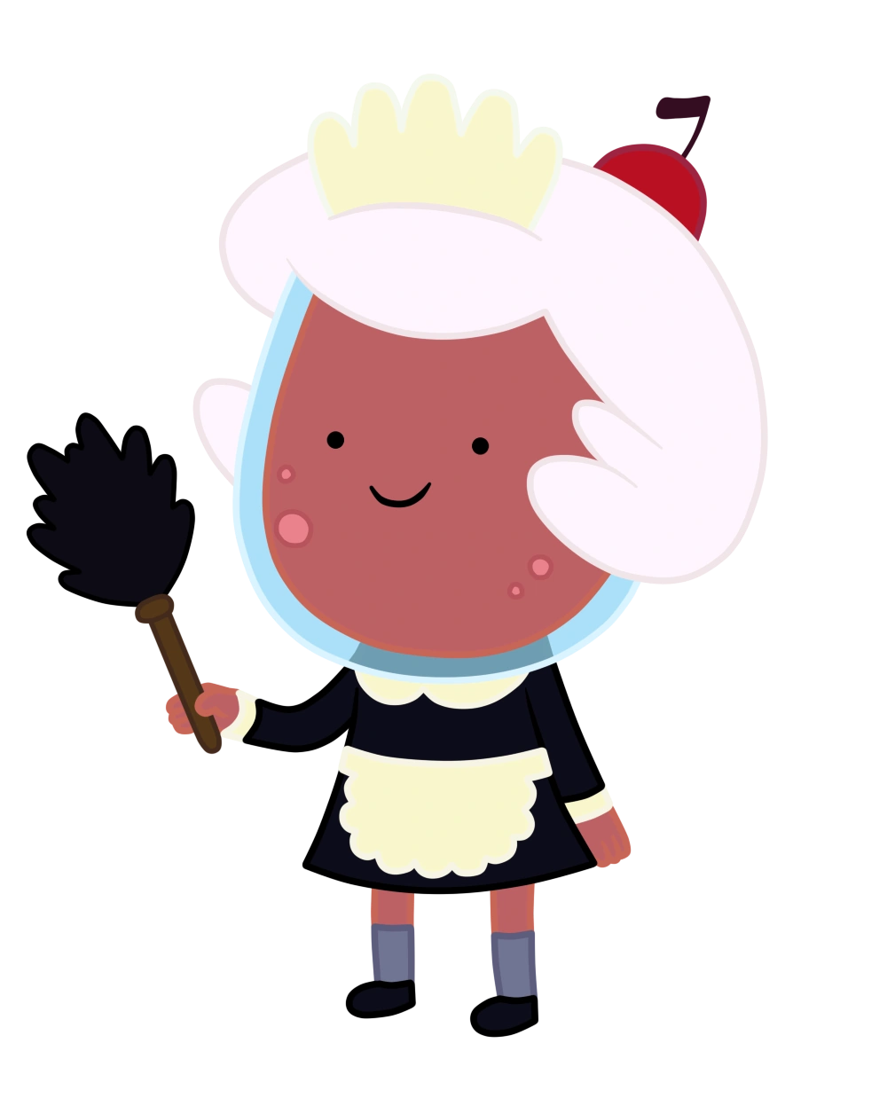 Es una Malteada de Cereza, por como se ve en su el interior de su rostro, y además tiene sobre su cabeza glaseado que simula ser su cabello, y por encima de este una cereza. Lleva un vestido rojo con botones blancos y zapatos rojos. A veces lleva una bolsa azul cuando sale de su casa. Físicamente se asemeja mucho a su esposo.