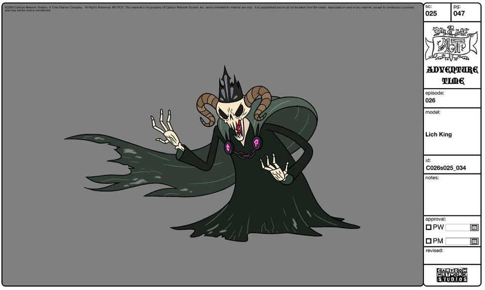 El Lich fue el único personaje que se describe en otros documentos, además de los seis personajes principales de aquel entonces (Finn, Jake, Dulce Princesa, Arcoiris, Rey Helado y Marceline).