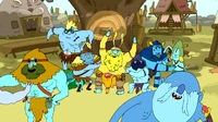 Los Vikingos Luchadores hacen su debut en el episodio "Recuerdos en la Montaña". Los Vikingos Luchadores son un grupo nómada de grandes humanoides de piel color azul, hombres que gozan de peleas y vivir juntos en una aldea.